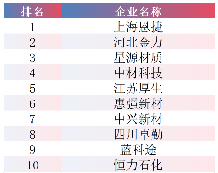 2025年,中国锂离子电池隔膜总出货量达328.5亿平米,同比增长44.4%。该赛道出货量前十企业依次为:上海恩捷、河北金力、星源材质、中材科技、江苏厚生、惠强新材、中兴新材、四川卓勤、蓝科途、恒力石化。其中,上海恩捷出货量接近100亿平米,市占率超30%,稳居行业领先地位;四川卓勤、恒力石化成功跻身前十。