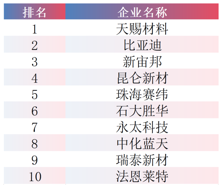 2025年,全球锂离子电池电解液出货量同比增长44.5%至240.2万吨,中国实际出货量达223.5万吨,占全球市场份额的93.05%,持续主导全球市场。全球出货量前十企业为:天赐材料、比亚迪、新宙邦、昆仑新材、珠海赛纬、石大胜华、永太科技、中化蓝天、瑞泰新材、法恩莱特。其中,天赐材料出货量达72万吨,市占率32.2%,连续多年蝉联全球第一。